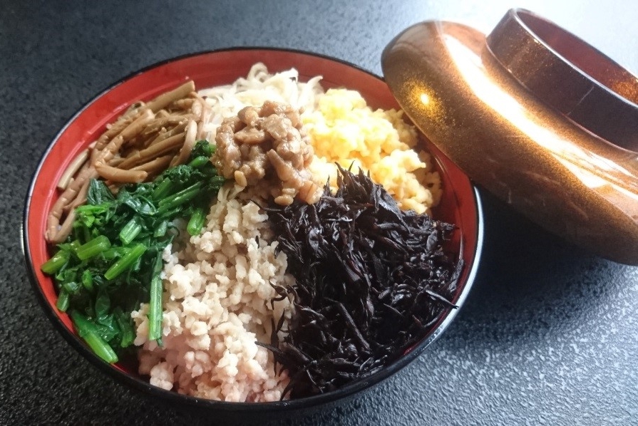 (地元食材として、鶴岡産つや姫、しょうゆの実、むきそばなどを使用)