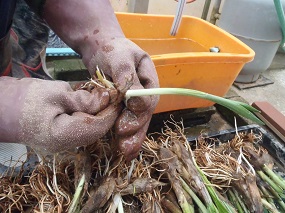 出荷のためには1本1本水洗いし、根を切り、外皮を取り除きます。