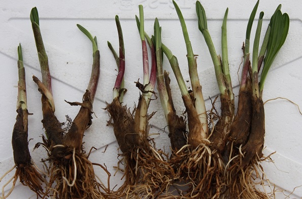 今年も多分さんの「我慢」が実を結び、茎が赤く色づいた美しい行者ニンニクが成長していました。この茎の色づきは、生まれ持った系統と朝日の昼夜の厳しい寒暖差によるものです。
