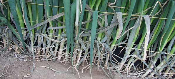 (写真は軟白ねぎの根元。西郷地区の砂地は辛みの少ないねぎに育みます。ねぎの葉は次々と萎れて新しい葉を出していきます。枯れていても問題ないそうです。)