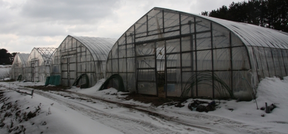 ハウスは雪の重みでしなり、明日も雪が降ればつぶれてしまうほどの積雪でした。疲れ果てた奥様と交代して、夜の9時までかかって残りの除雪したこともあるそうです。