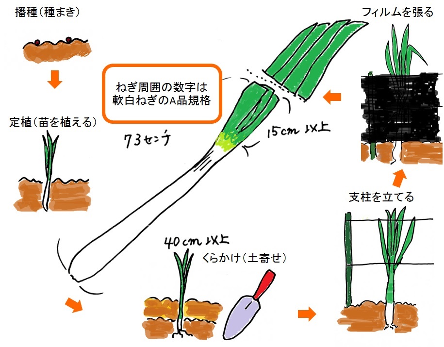 軟白ねぎの栽培には5月から12月までの7ヶ月もかかります。栽培方法は以下のとおり。