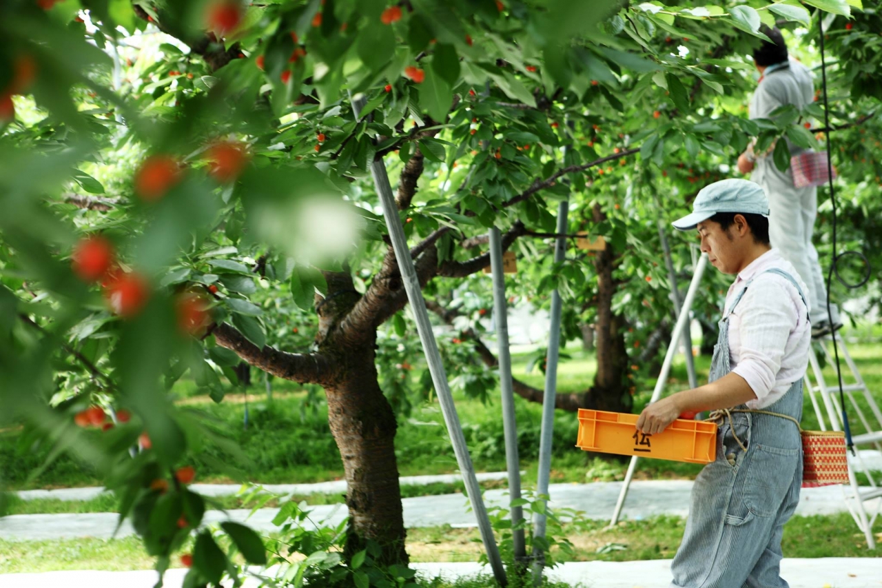 季節のさくらんぼ園は忙しい (photo:satomi honma)