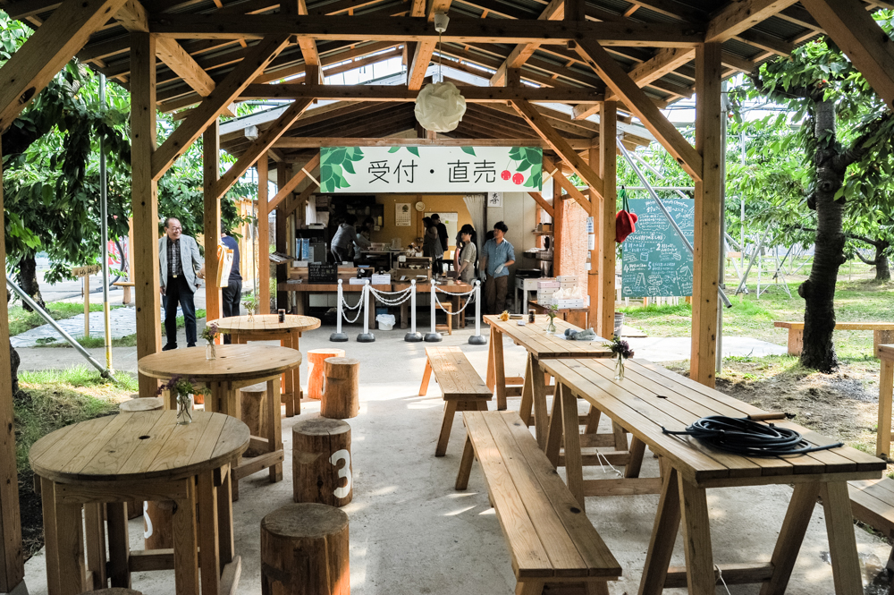 さらに、まずお客さんを迎えるさくらんぼ園の入口や、木製の椅子やテーブルが配置された空間は、特別な場所に来たようなゆったりとした気持ちになります。「お客さんに触れるところは、2人で相談しながら作らせてもらってます。実際、僕たちが来る前は、人手が少ないこともあったけど、接客や空間で改善できるところもたくさんありました。今ではそういう部分は、僕たちに任せてくれていることもあります。」