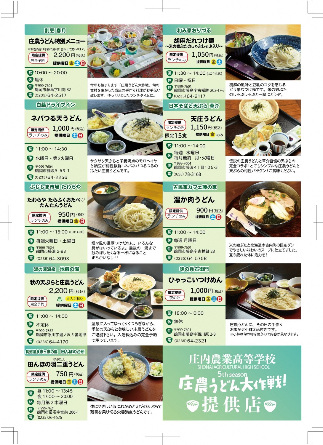 藤島地域内の9店舗で庄農うどんを使ったオリジナルメニューを提供いたします!