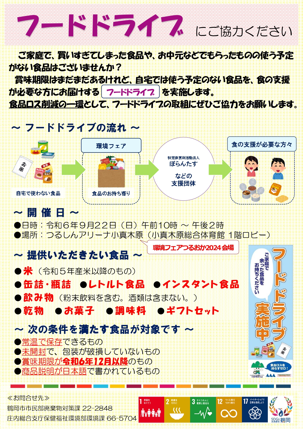 自宅で使う予定がない、賞味期限に余裕がある食品の寄附の受け付けをします。