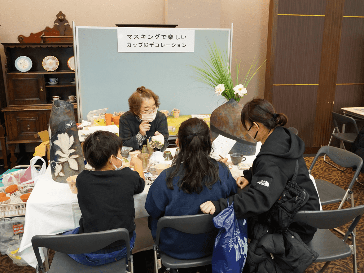 ワークショップ 羽黒山椿窯 マスキングでカップのデコレーション