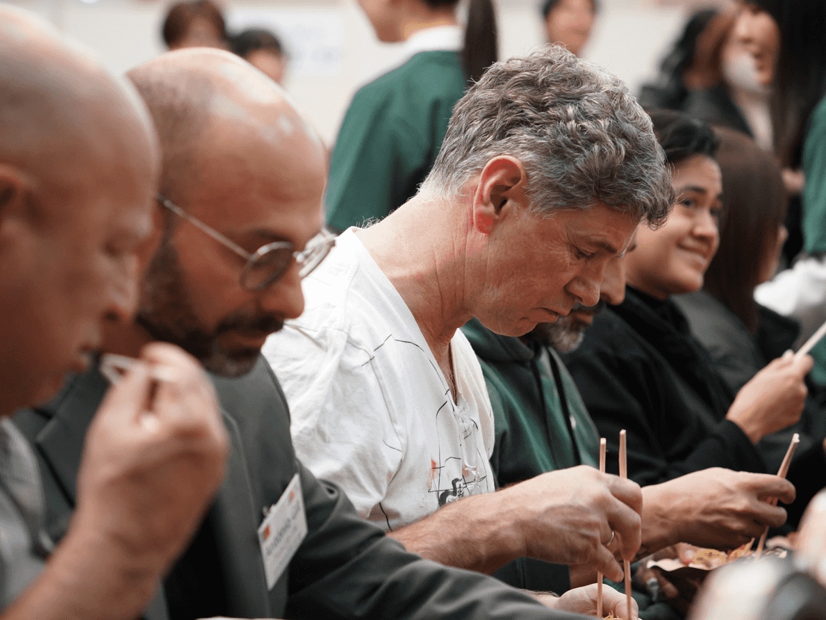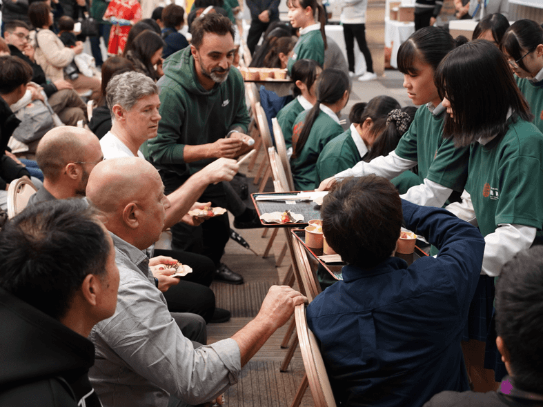 高校生スタッフからふるまいを受け取る海外のシェフたち