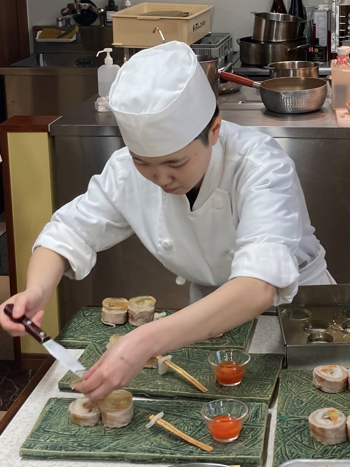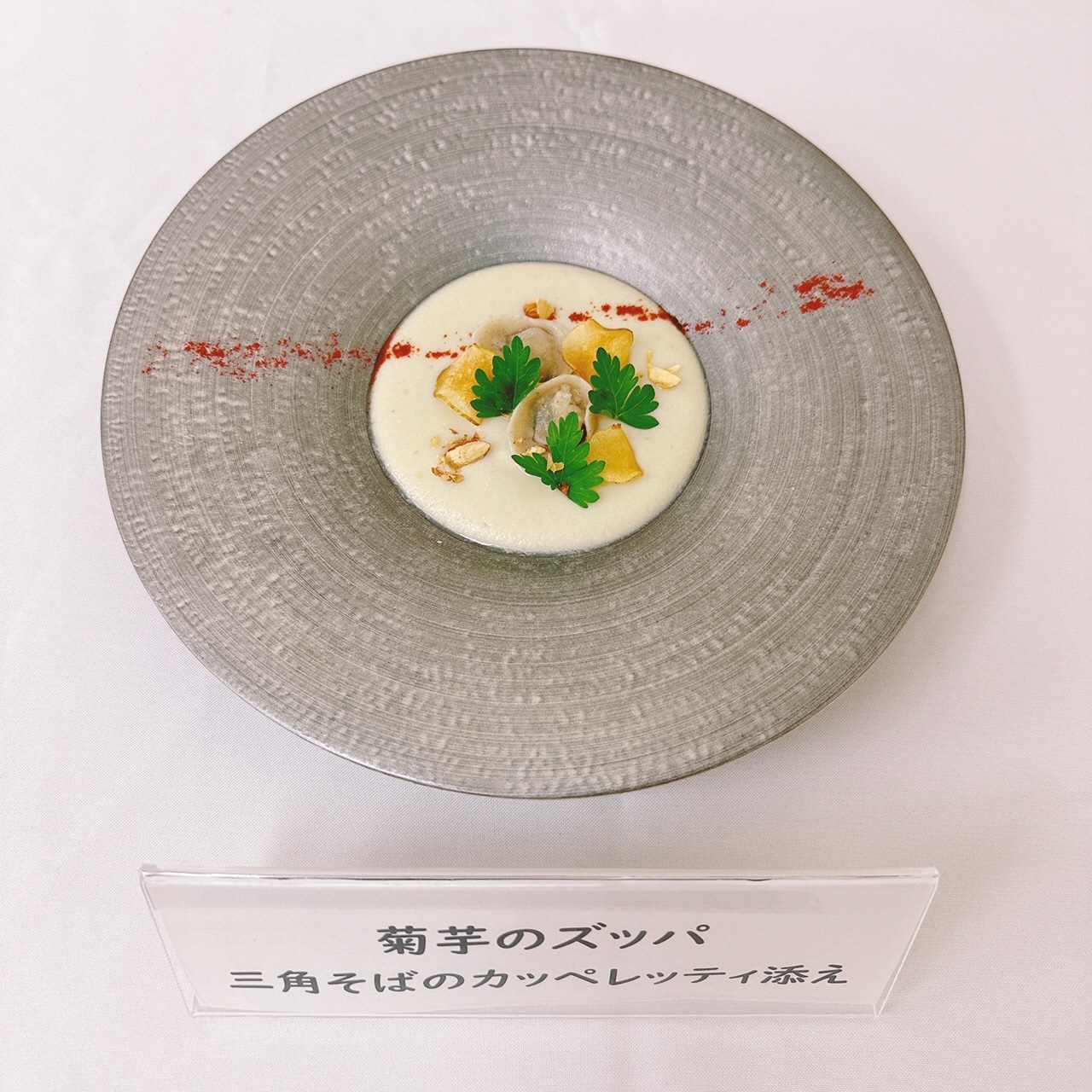 “カラトリ芋”の意外性に富んだメニューで盛り付けも美しい。立ち居振る舞いが爽やかで、カラトリ芋を食べてもらいたいという思いだけでなく、生産者の思いまで伝わる表現。