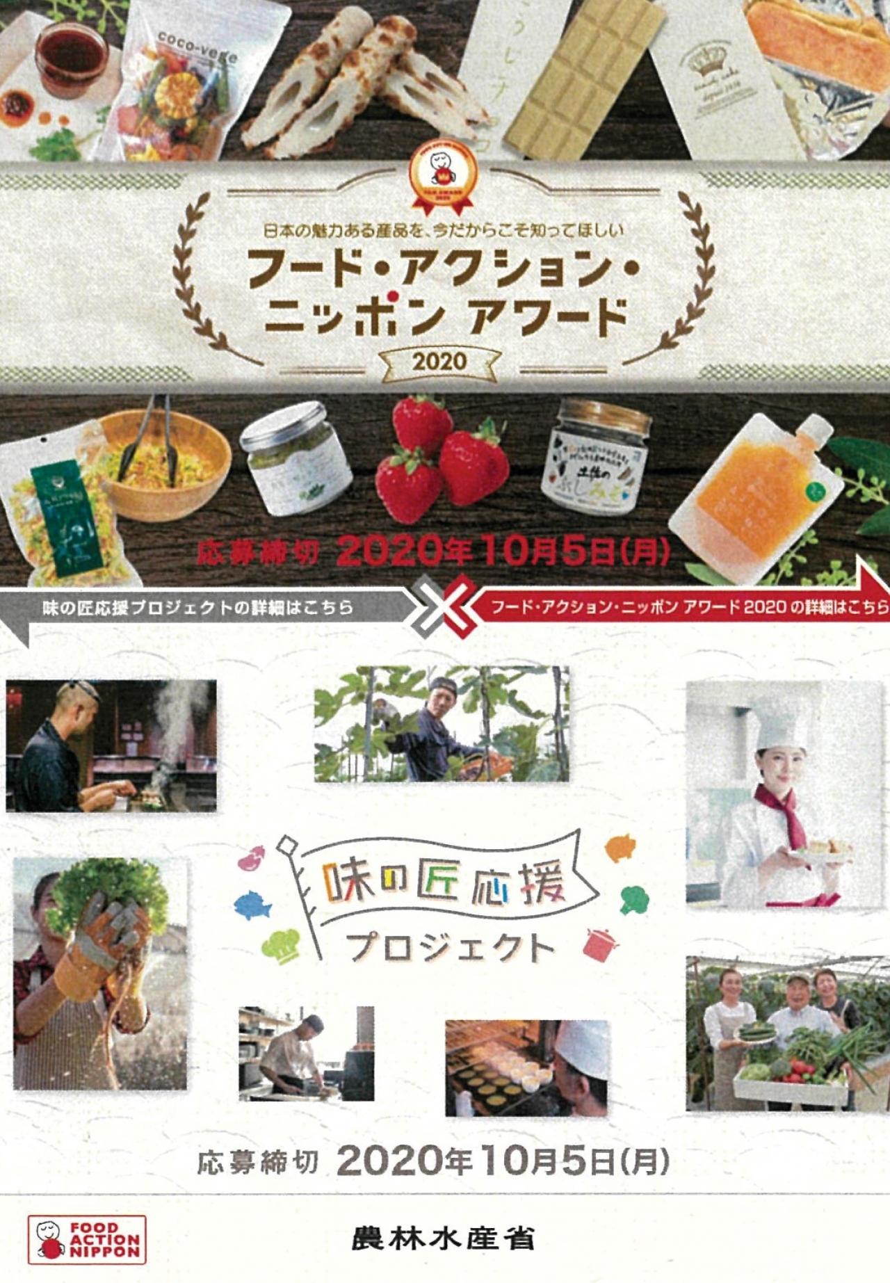 【募集周知】第12回 「フード・アクション・ニッポン アワード2020」、「味の匠応援プロジェクト」実施概要のご案内