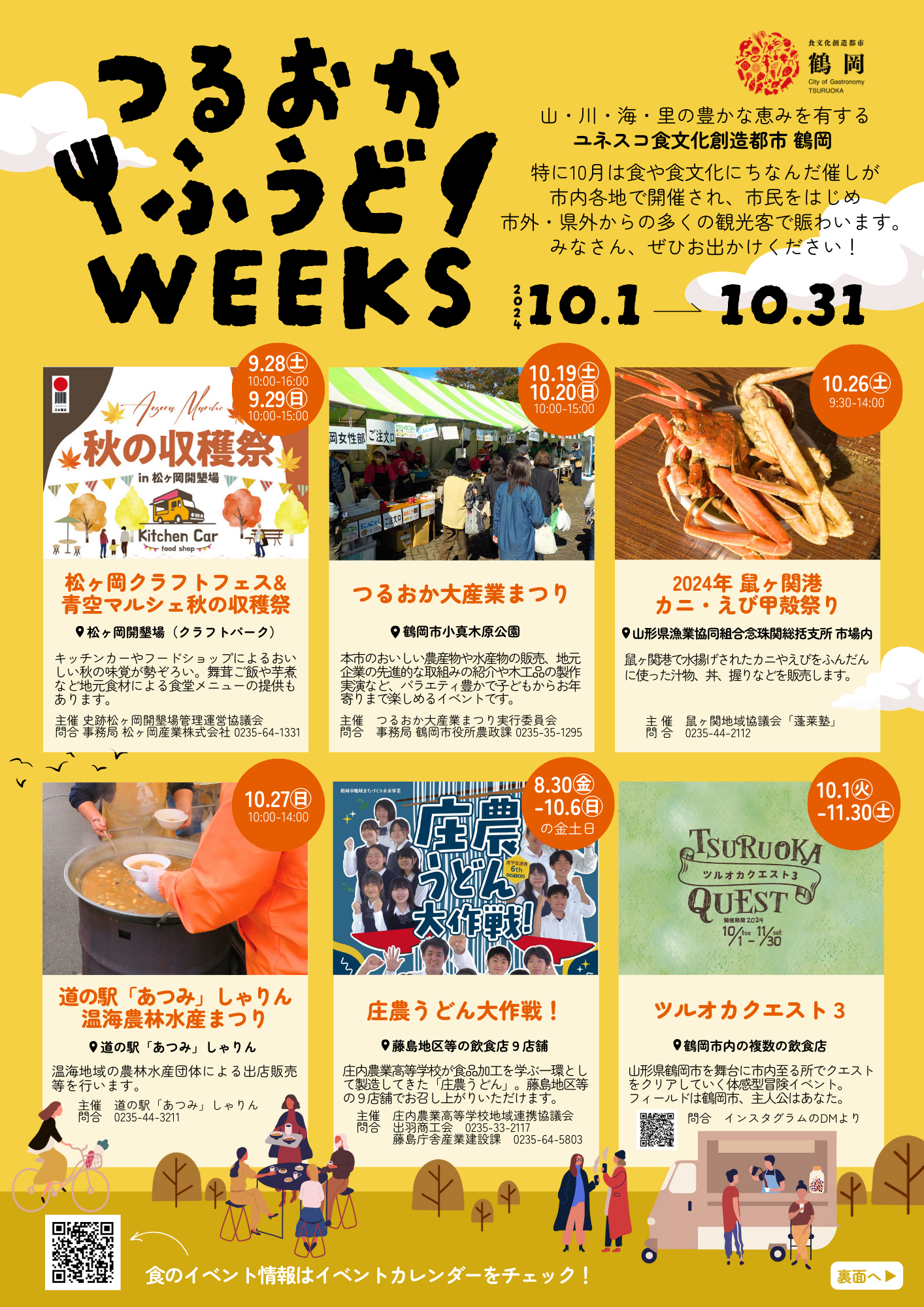 イベント情報は、下の「つるおかふうどフェスタ イベントカレンダー」をご覧ください。