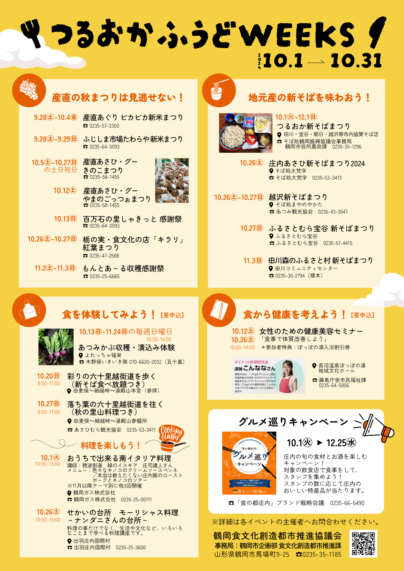 ◆内 容:10月は「食」のイベントが鶴岡市内各所で多数開催されます!