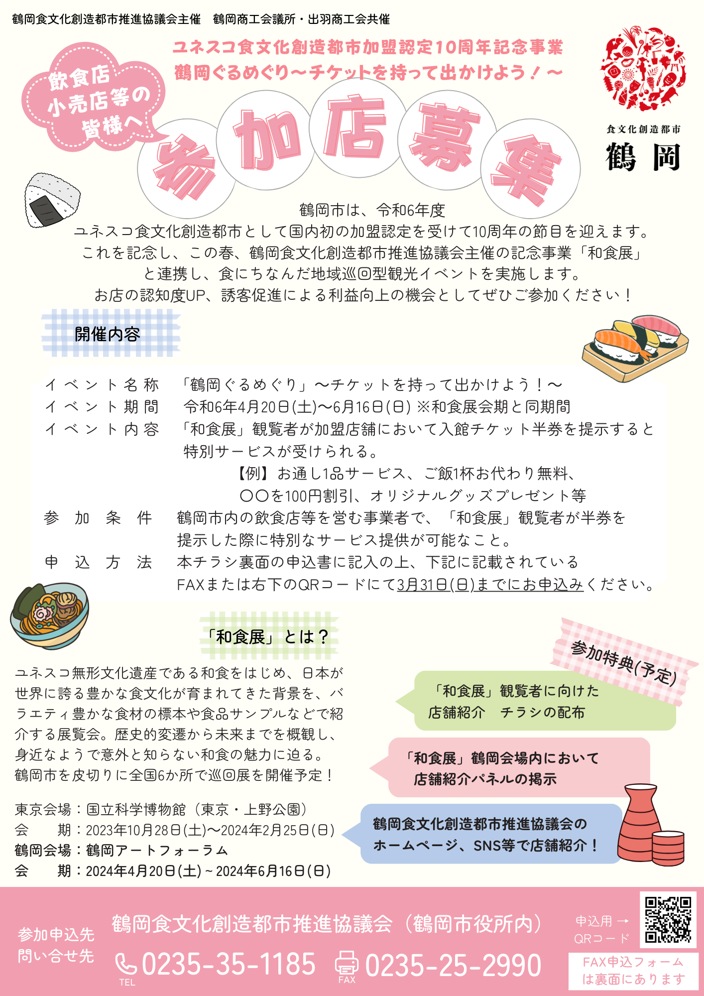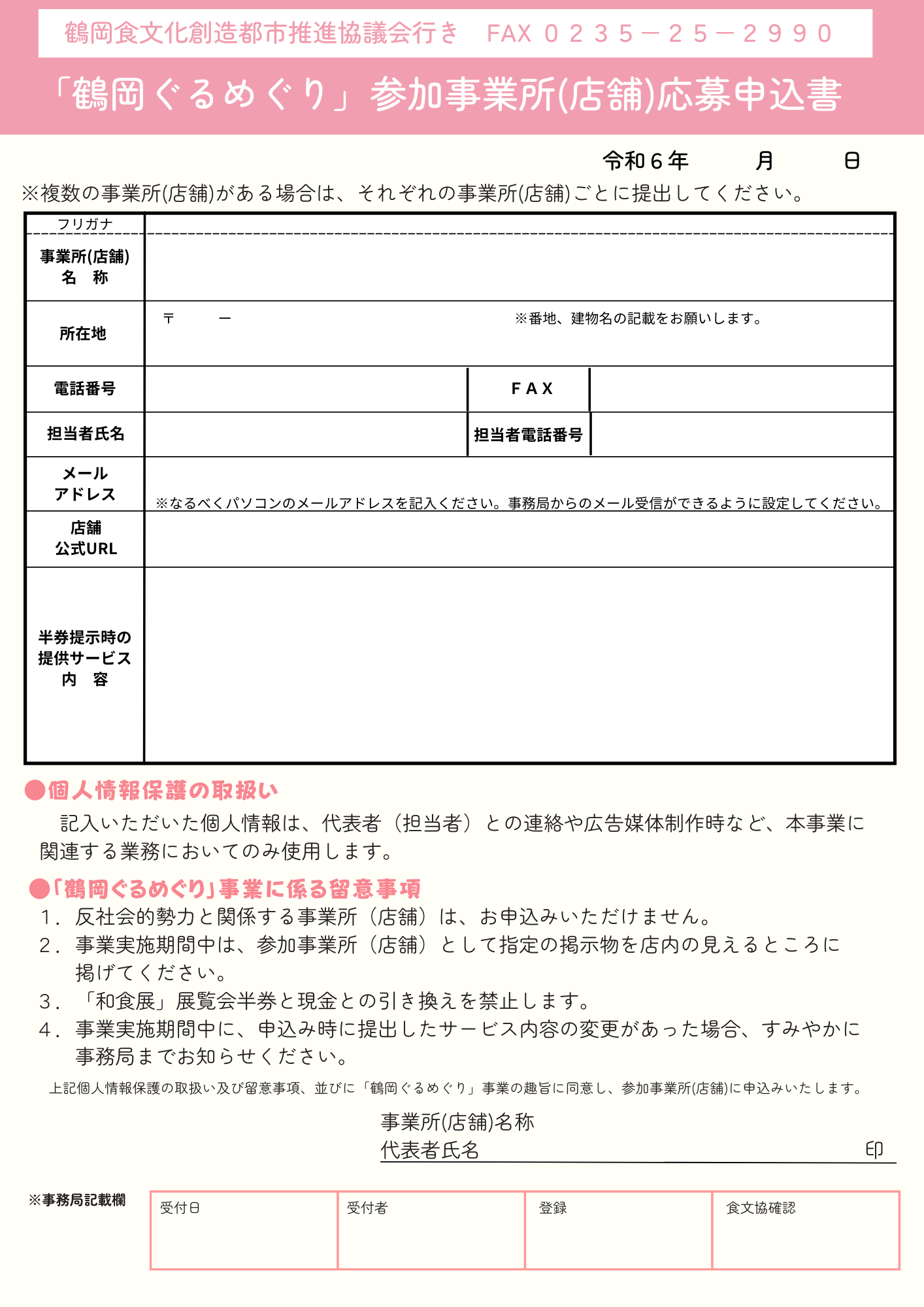 「鶴岡ぐるめぐり」参加店募集チラシ&申込書Ver.2(559.4KB)