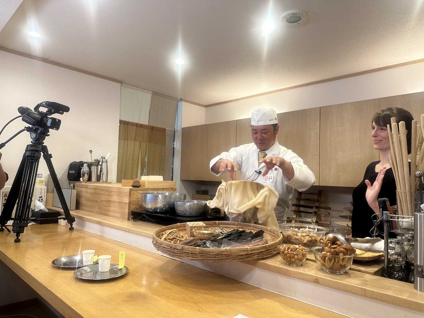 ③調理解説:かつおと昆布の合わせ出汁のとり方を、調理して見せながら日本