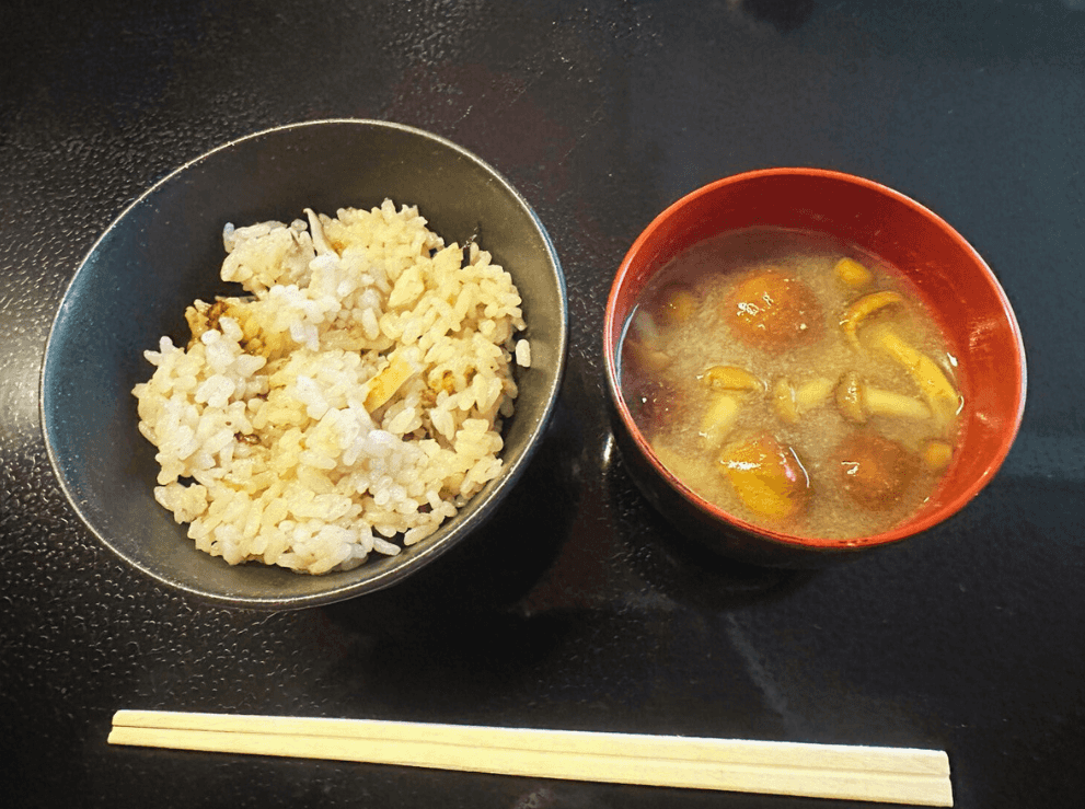 6人が調理した合計24人前の炊き込みご飯と味噌汁は、オンライン講座を見学していた20名の学生達にも配られました。