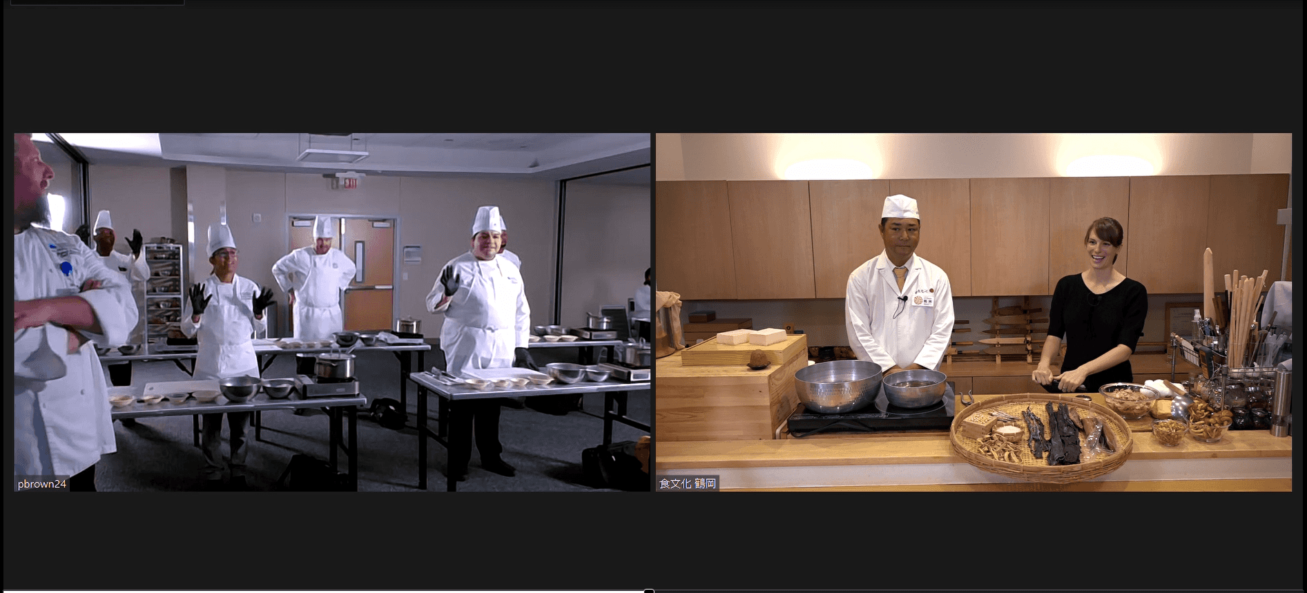 今回は、鶴岡食のアンバサダーである、日本料理 わたなべ 店主 渡部賢氏に講師を務めていただき、サンアントニオの聖フィリップス料理大学の学生に、日本料理の基本となる出汁についてレクチャーしました。