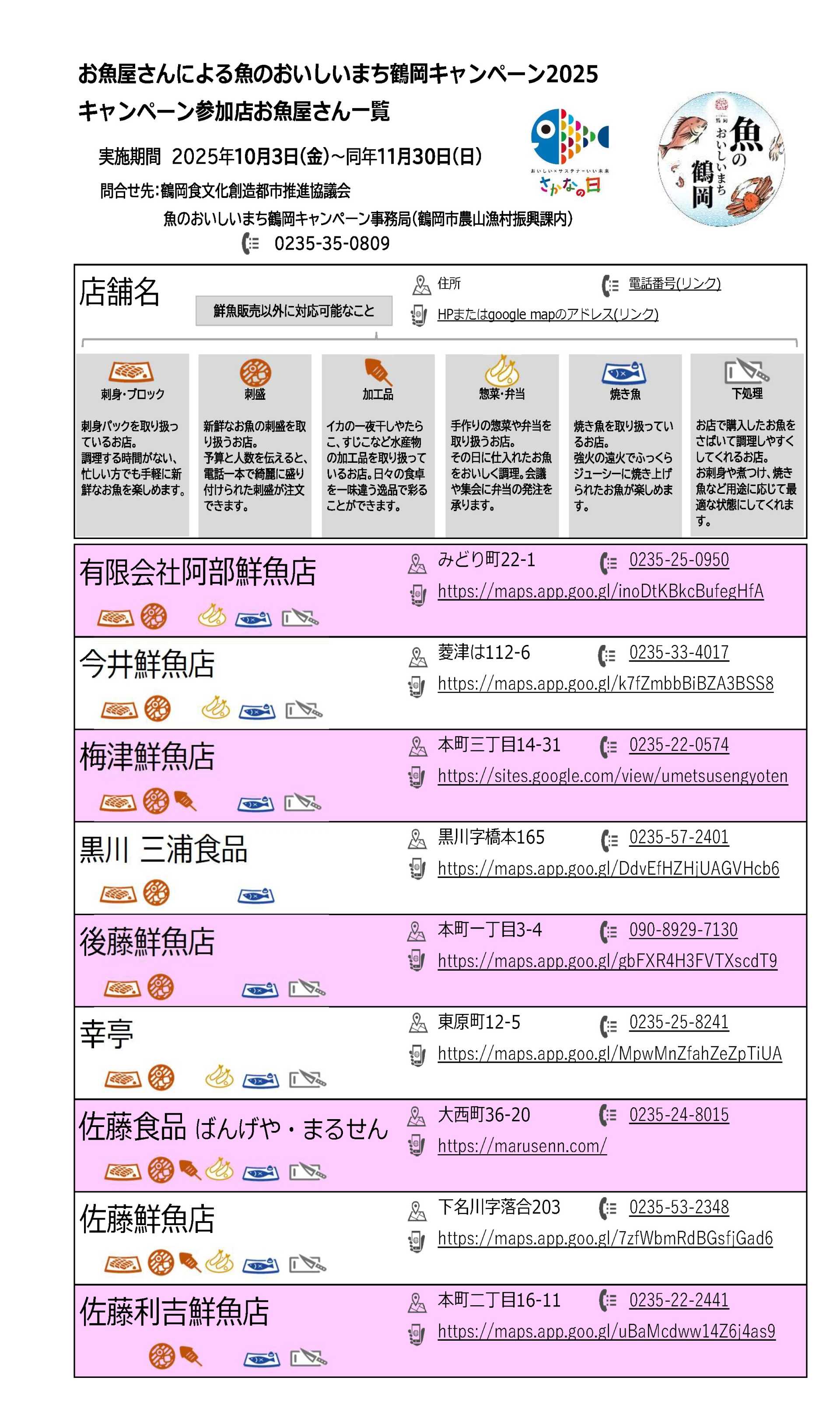 「お魚屋さんによる魚のおいしいまち鶴岡キャンペーン 2025」