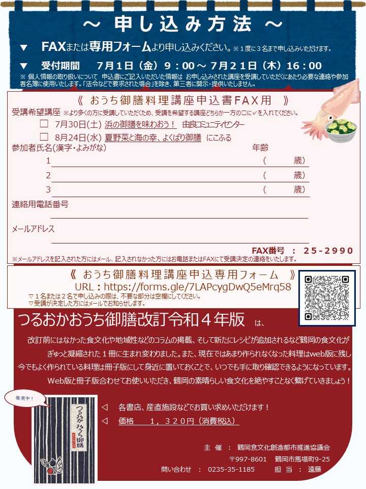 お問合せ 0235-35-1185 鶴岡食文化創造都市推進協議会