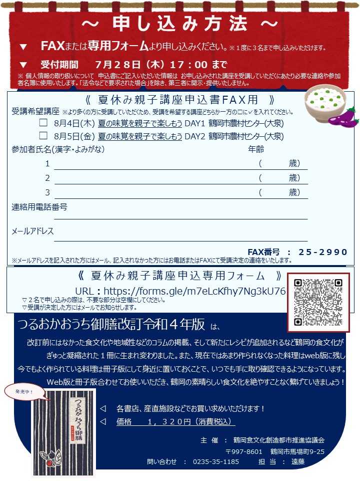 《 夏休み親子料理講座申込専用フォーム 》