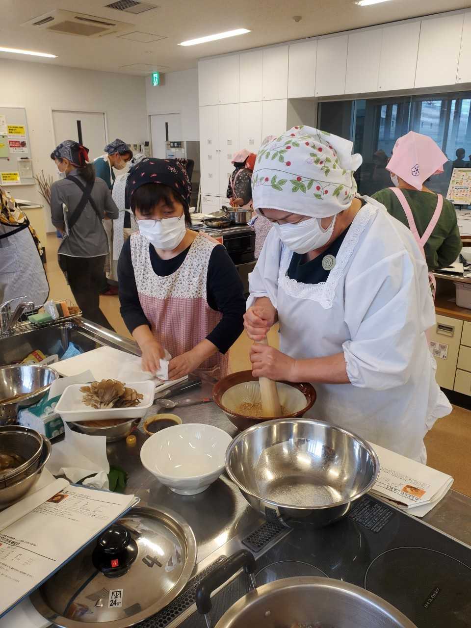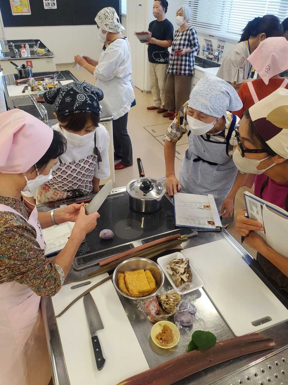鶴岡市食生活改善推進協議会・朝日地区の皆さんをお迎えし、鶴岡の郷土料理を一緒に作りました。大粒の栗を使った「栗ご飯」や、全国生産量の9割を山形県が占めるあけびを使った「あけびの肉味噌詰め」など、秋の味覚を一足先に味わいました。