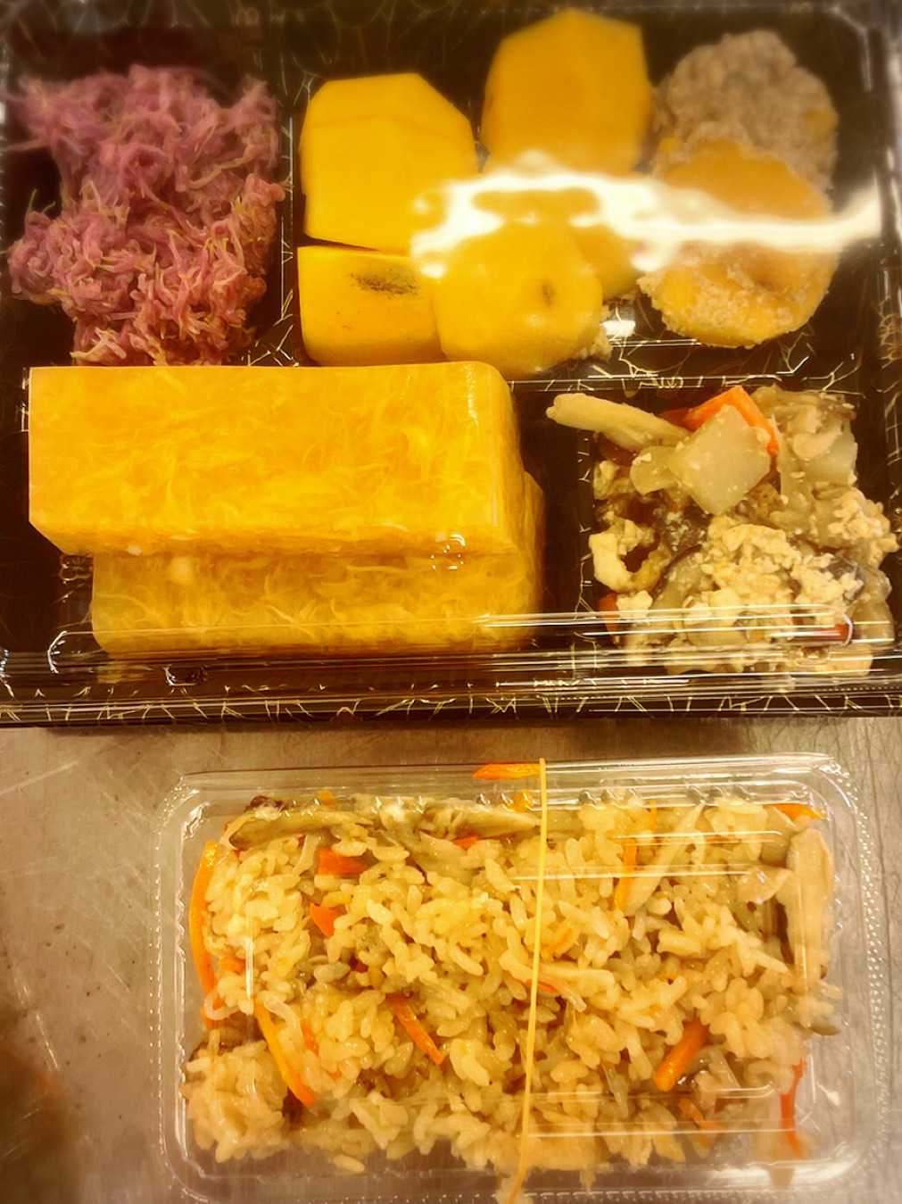■ メニュー 関根みそ、まいたけの炊き込みご飯、卵寒天、柿の白和え、菊のおひたし