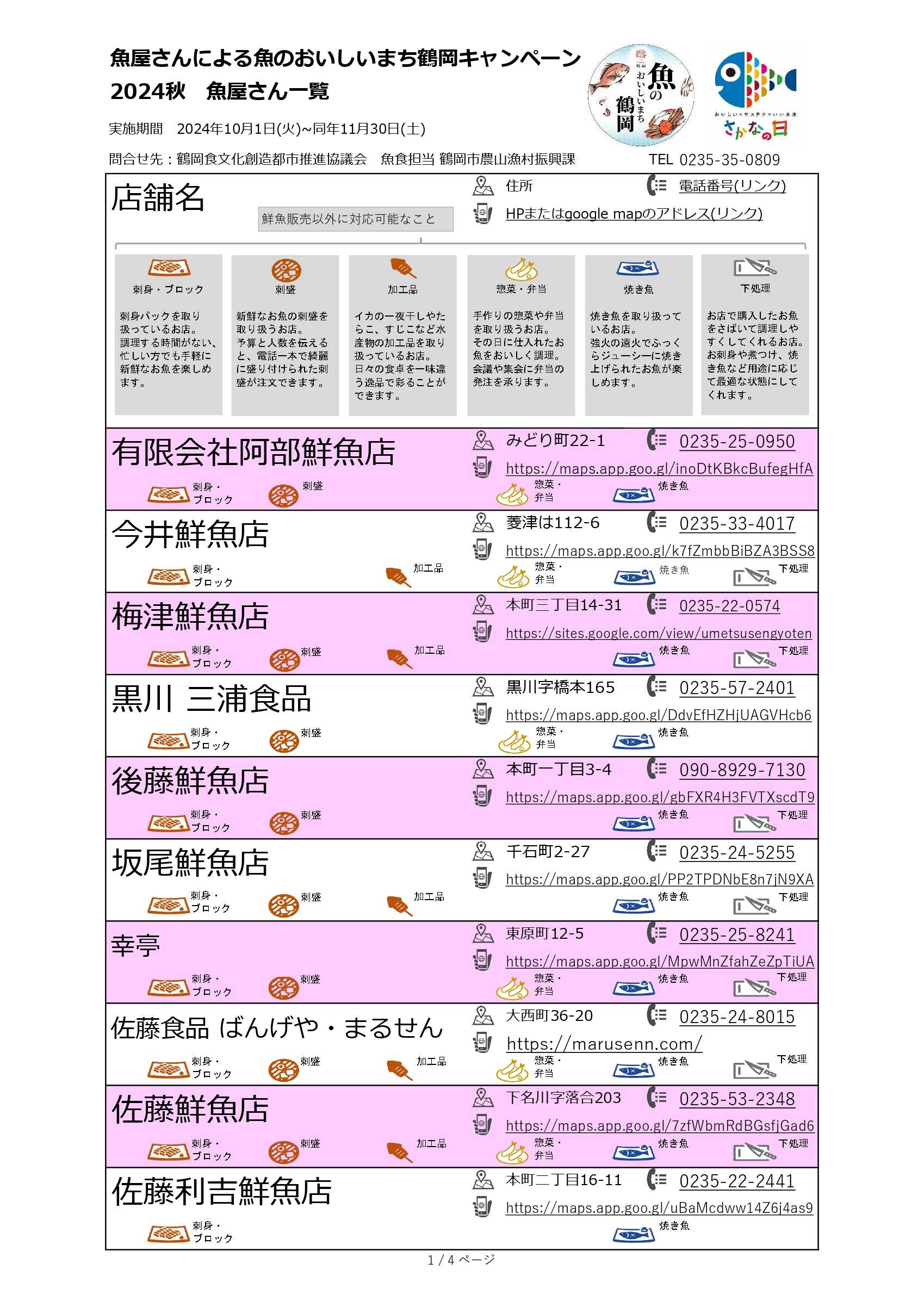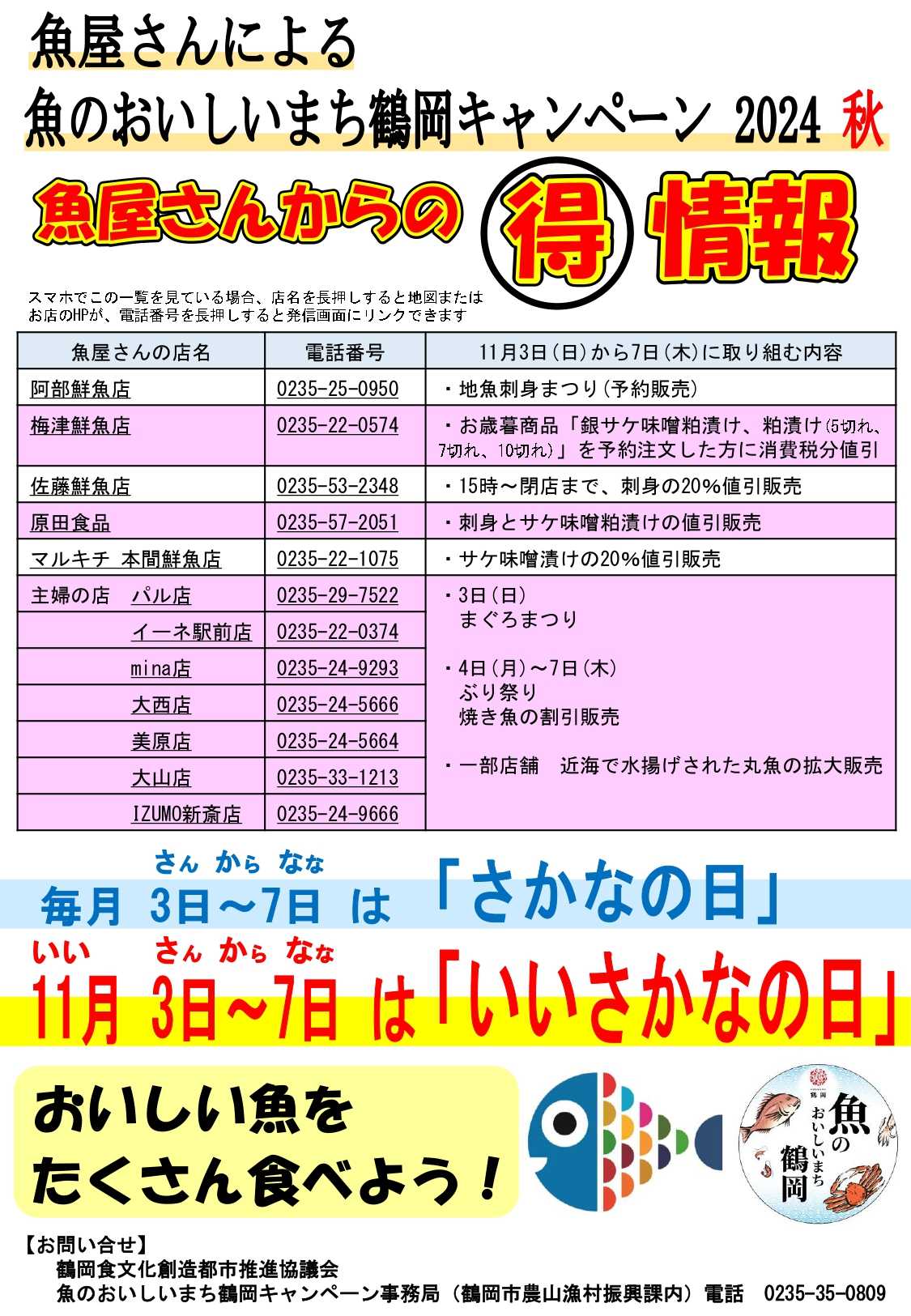 魚屋さんによる魚のおいしいまち鶴岡キャンペーン2024秋