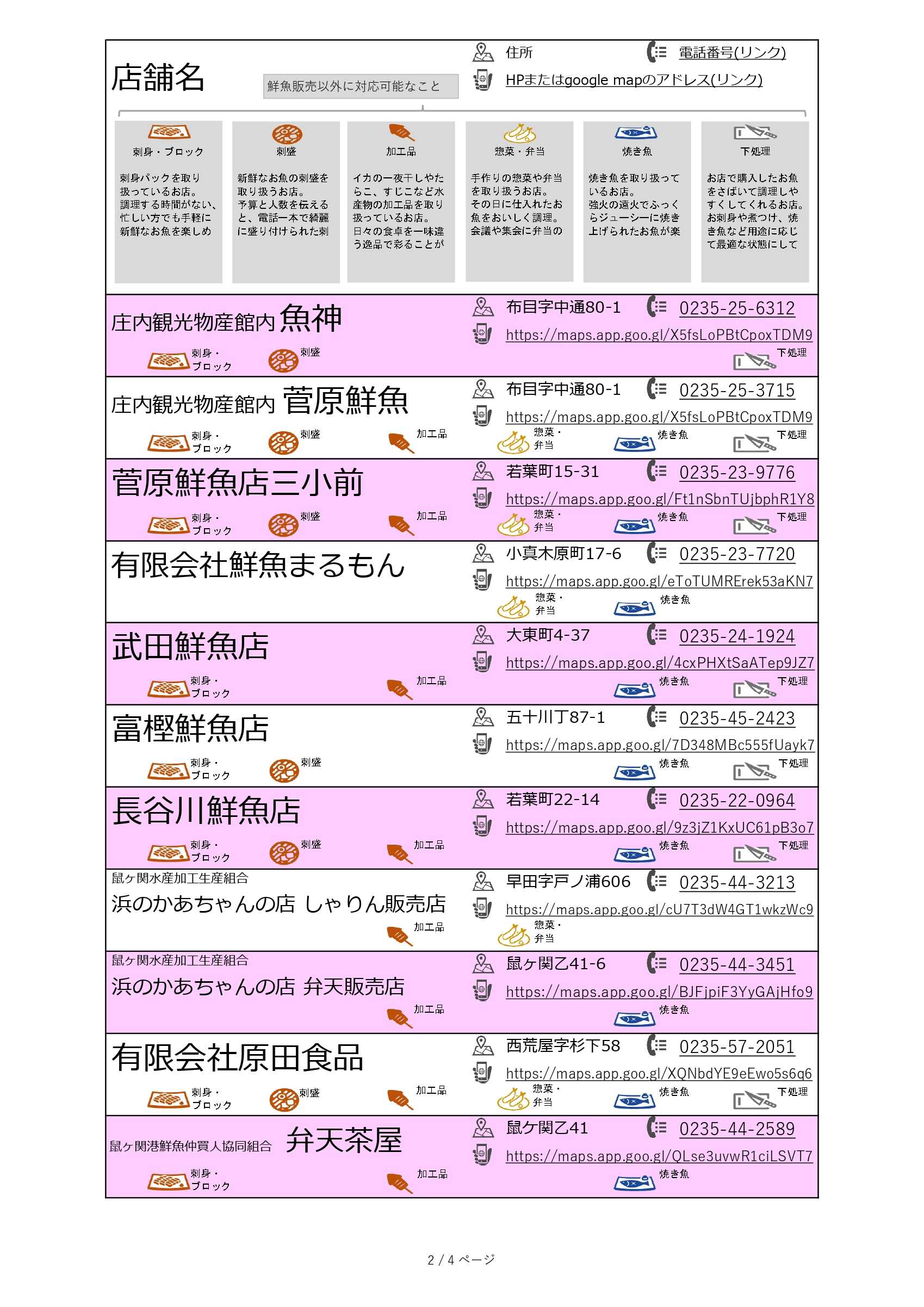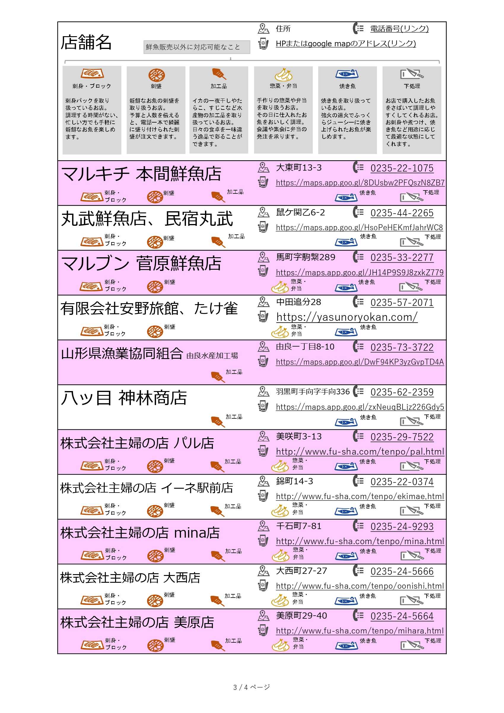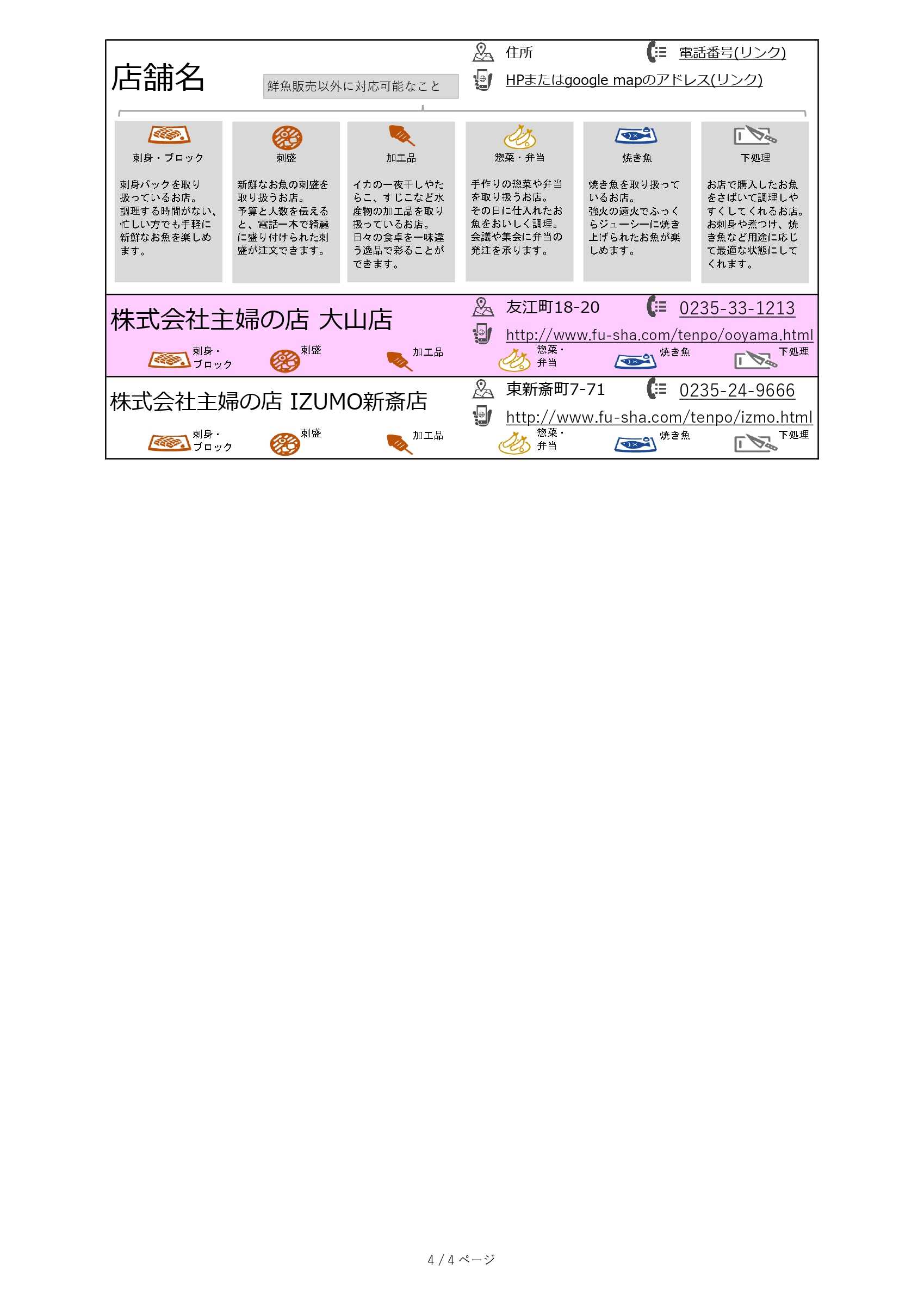 ※マル得情報PDFファイルをスマホでダウンロードして開くと、店名を長押しして地図またはお店のHPが、電話番号を長押しして発信画面にリンクできます。お店の場所探し、商品の予約、お問合せ時にご活用ください。
