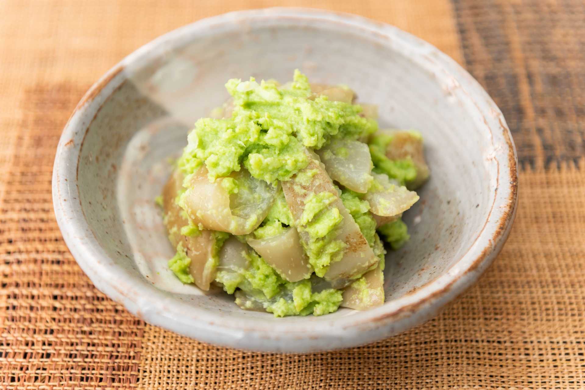 - あけびは中の果肉を取り、果皮を少々の塩でさっと茹で、水気をきっておく。