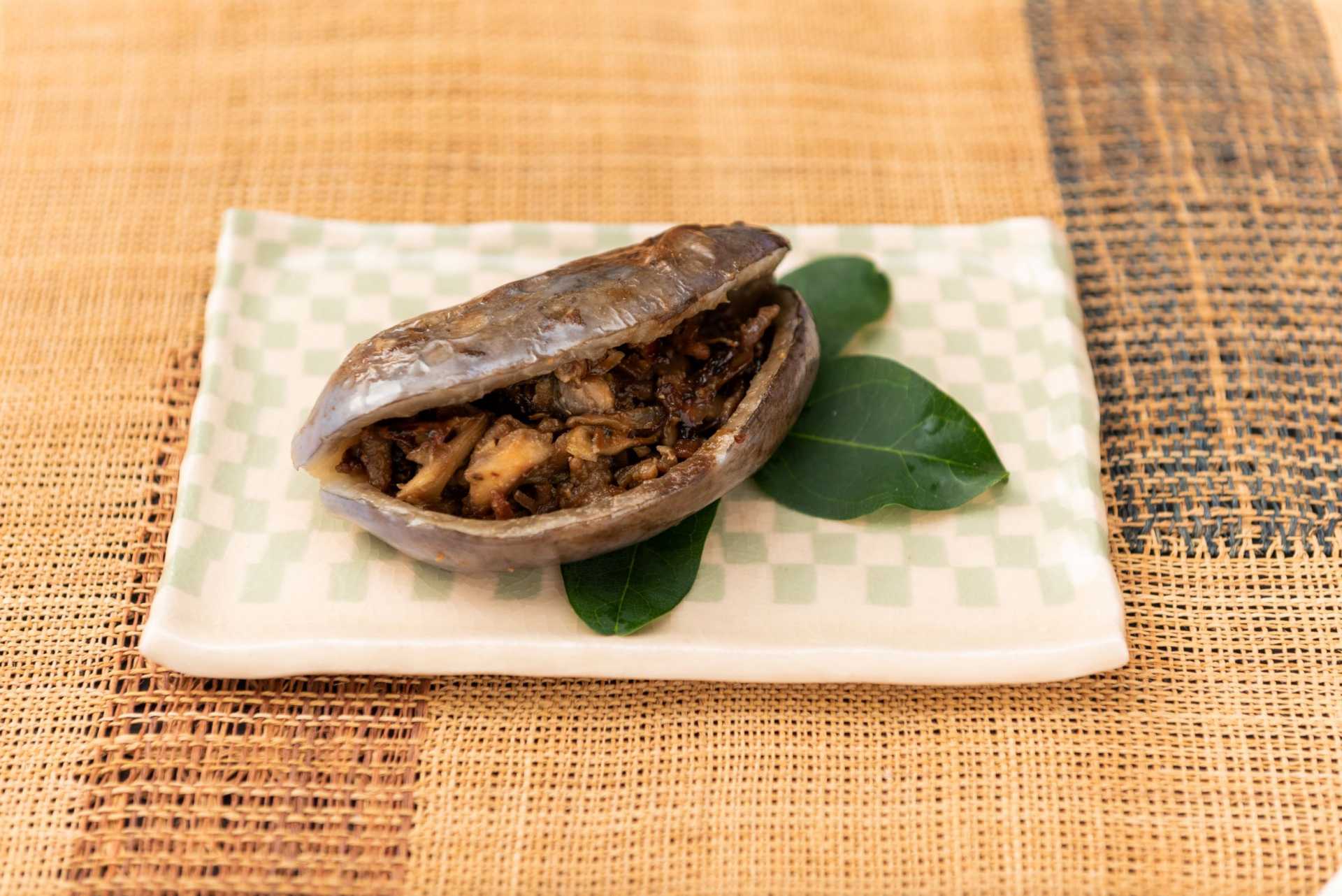 あけびは一般的に中のプルプルの白い果肉を食べますが、鶴岡では昔から、果皮を料理して食べてきました。