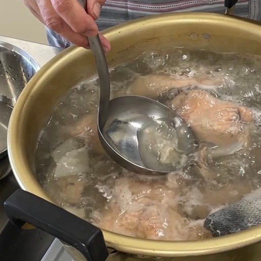 - 3が人に煮立ちしたらアクを取り、酒を加える。