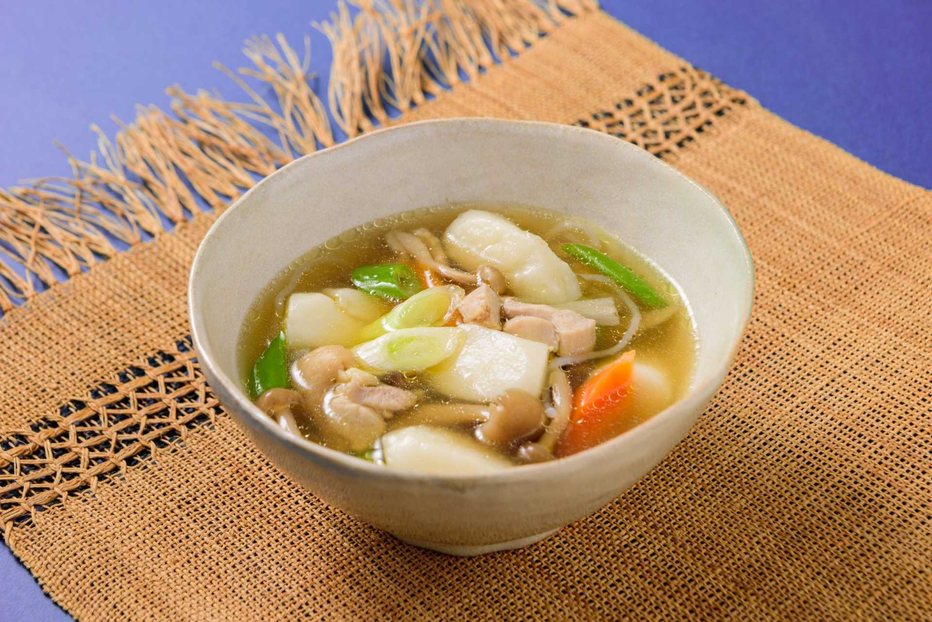 しめじ 糸こんにゃく 長ねぎ にんじん べろべろ餅 通年 ごぼう 温海べろべろ餅のすまし汁