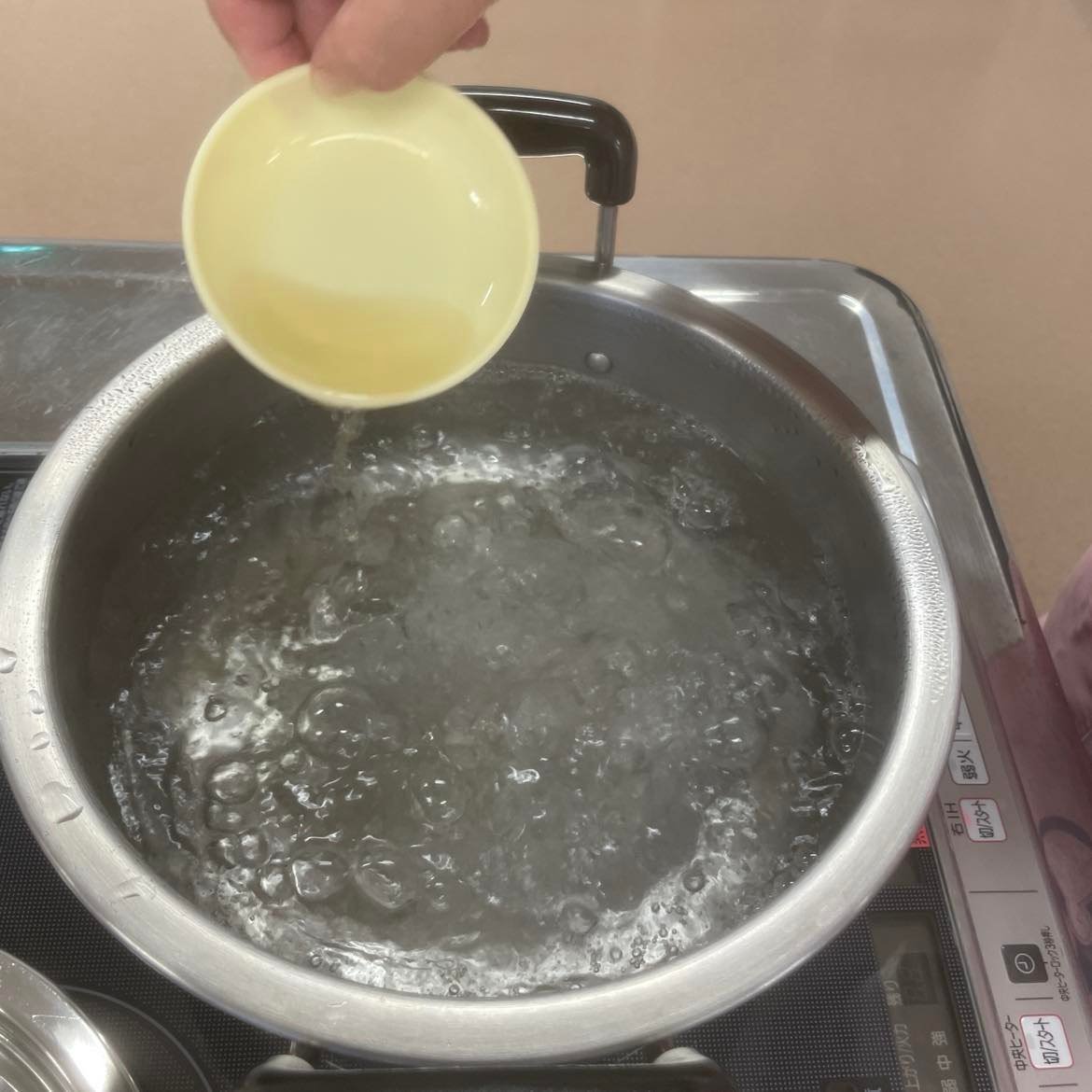 - 鍋にたっぷりのお湯を沸かし、酢を少量入れて菊をさっと茹でる。