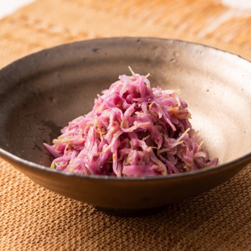 ※菊の水分をきる際に強くしぼりすぎると酸味が出るので注意する。