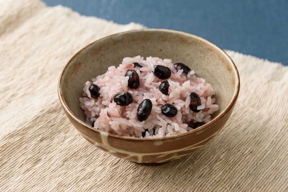※黒豆は、なますを作る時のように煮て、その煮汁を入れて炊く方法もある。