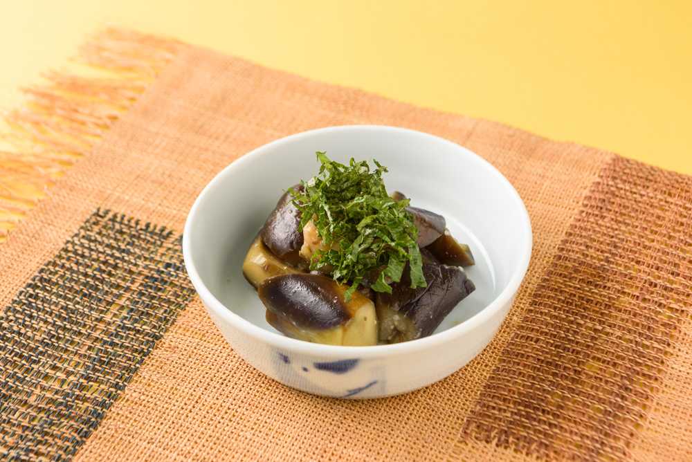 - 鍋にサラダ油を入れ、1のなすを炒め、 やわらかくなったら砂糖、 酒、味噌で味付けし、 最後に2の大葉を入れて混ぜ合わせる。