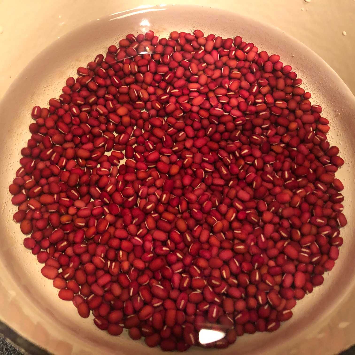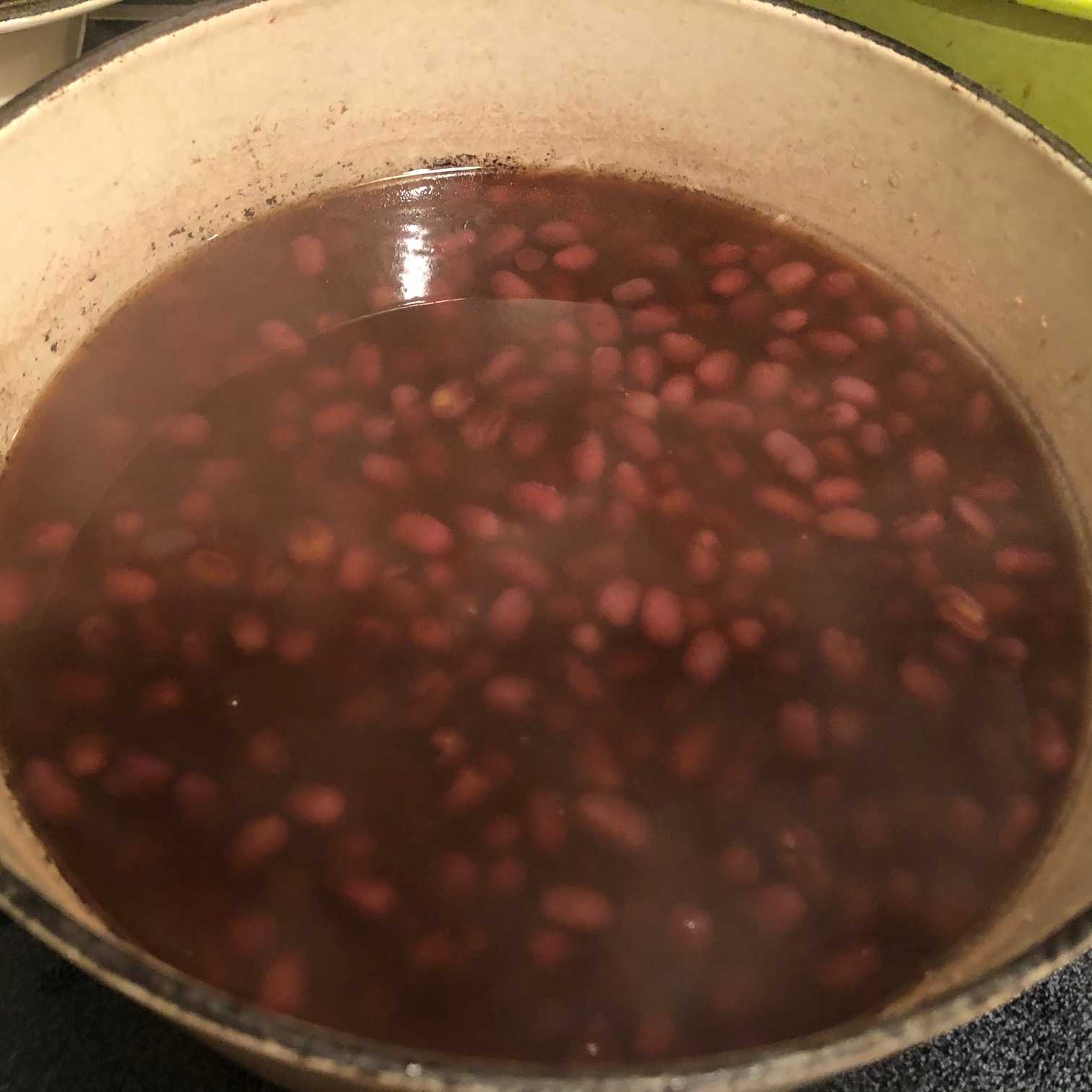 ② ①の小豆を鍋に戻し、数倍の水を加えて火にかけ、沸騰したら中火にしボコボコと沸き立つ程度の火加減で煮る。