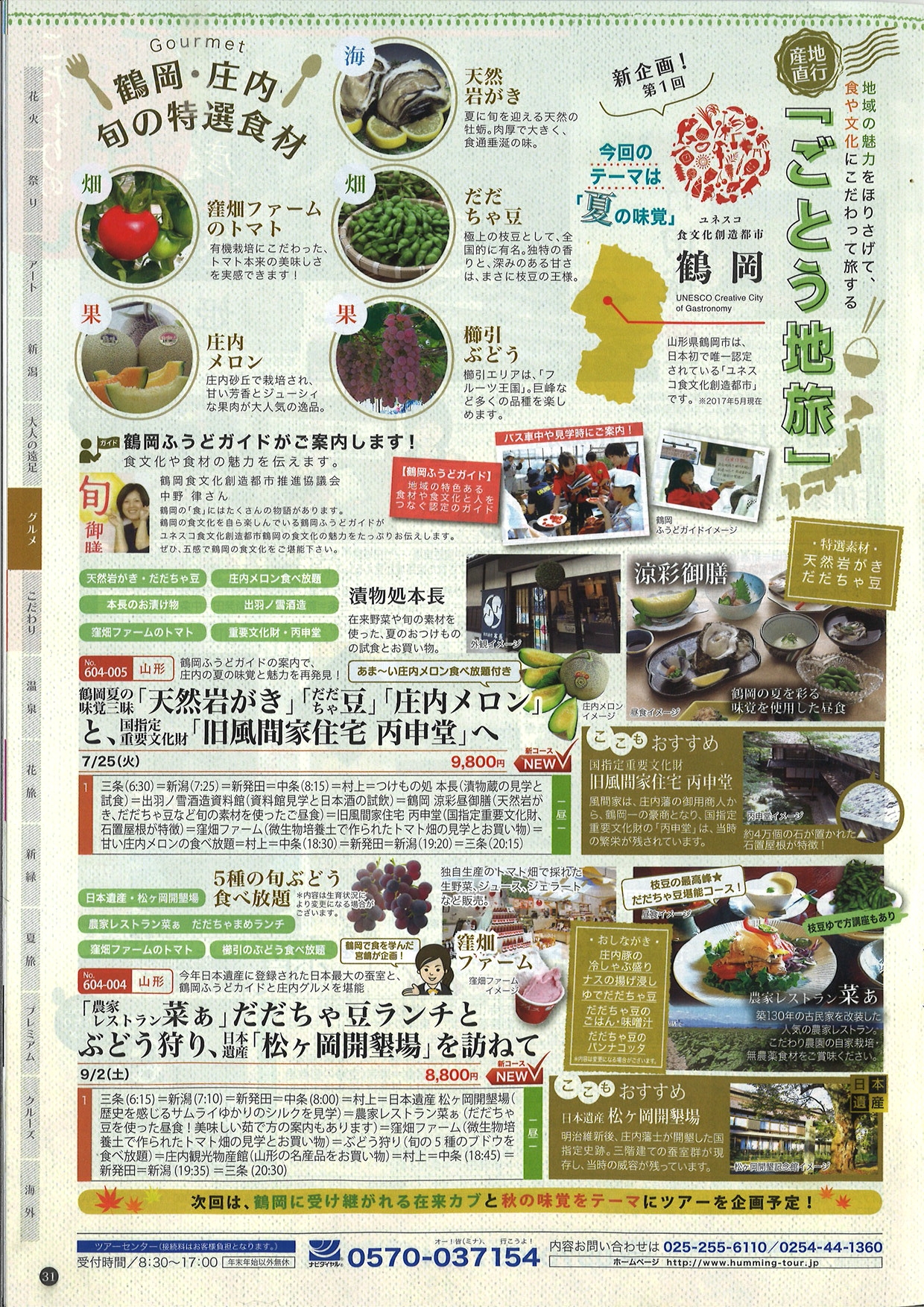 ■日帰りバスツアー 新潟ー鶴岡ハミングツアー夏号