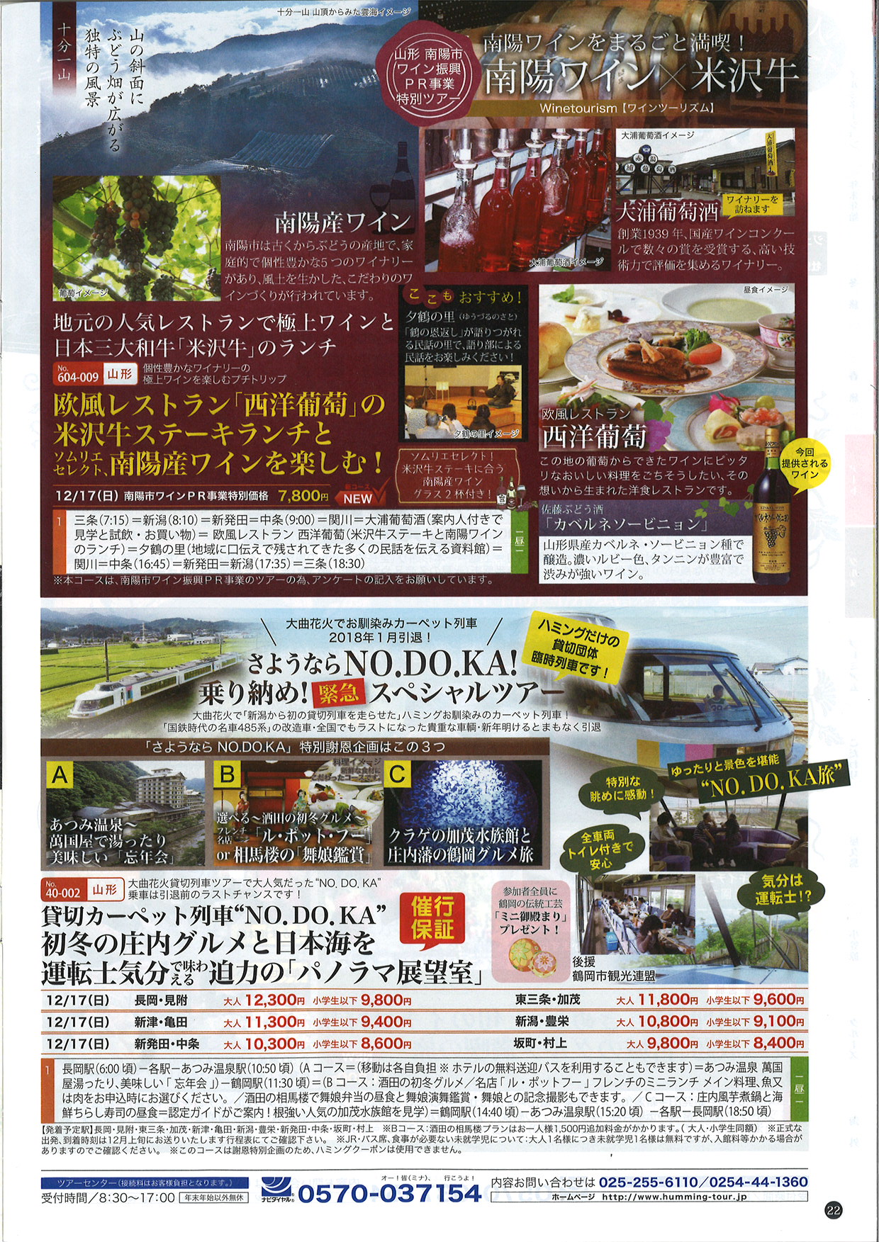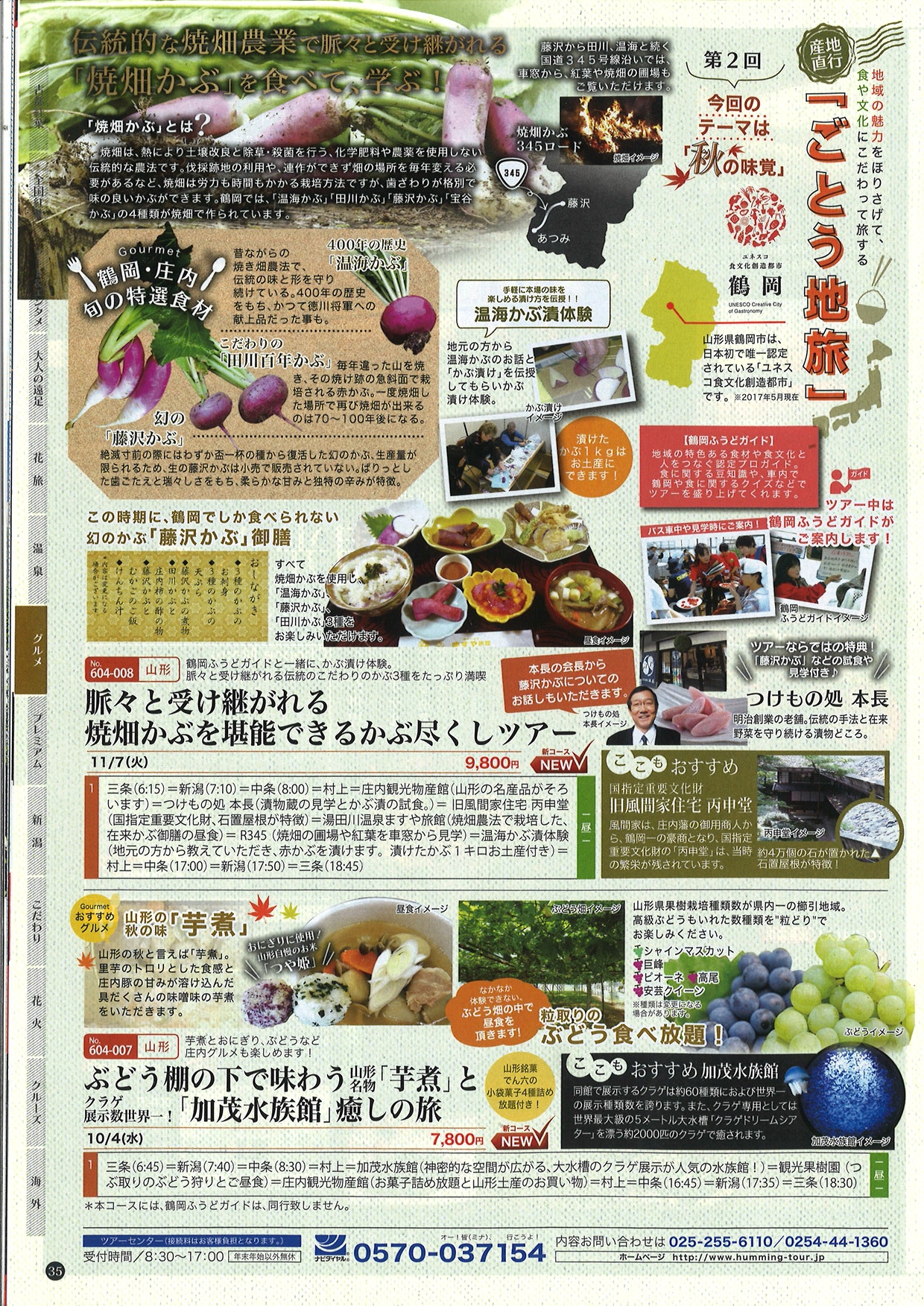 ■日帰りバスツアー 新潟ー鶴岡ハミングツアー秋号