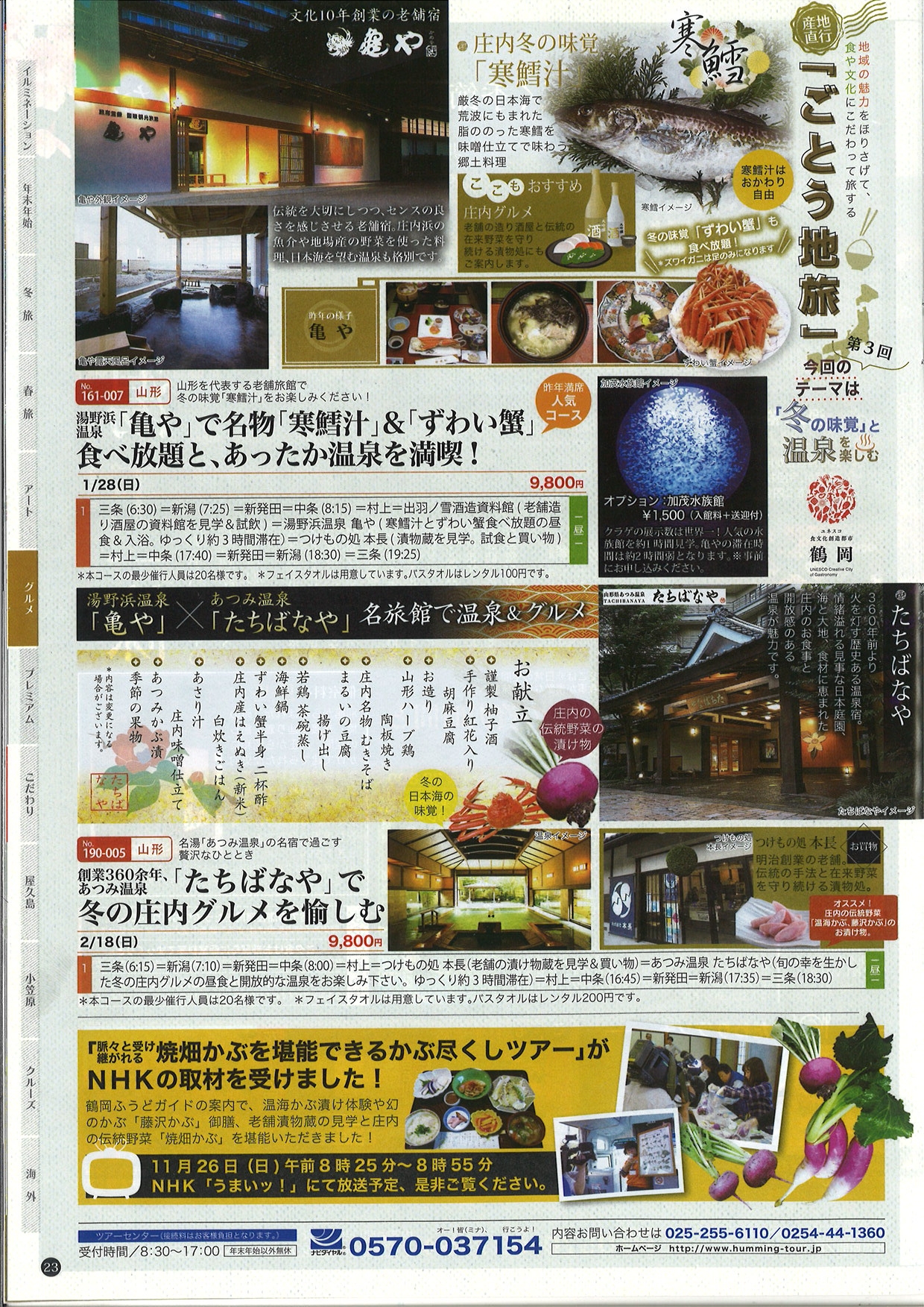 ■日帰りバスツアー 新潟ー鶴岡ハミングツアー冬号