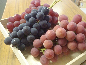 最近の流行は、皮ごと食べられる種なしぶどう。