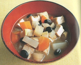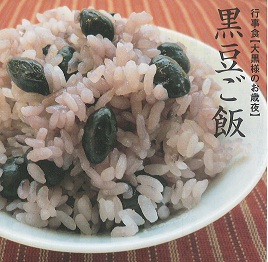 黒豆料理と大根料理を食べて、豊作と子孫繁栄を祝います。豆と大根は畑作物の代表であり、それらを供えることは大黒天を農神として信仰していることを示しています。