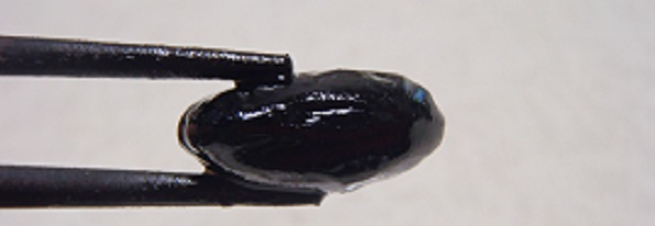 平べったくて、ふちが少しとがり、鈍く黒光りする様は、まるで豆型の碁石のようです。