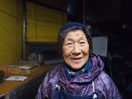 82歳の倉子さんは、25歳の時から「アバさん」を始められ、以来57年間、由良地区をまわって魚の行商をされています。