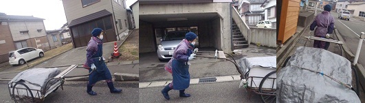 60-70キロの荷物をリアカーで押し、由良の決まった檀家さんおよそ15軒を3時間かけて回ります。