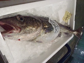 萬龍丸で獲れた寒鱈は、上のシールがつけられます。