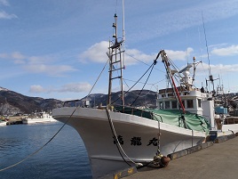 海は凪となり、今年に入って2回目の漁を終えた萬龍丸船長の飛塚裕実さんからお話を伺いました。