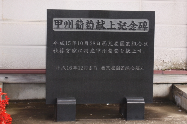 西荒屋地区の甲州ブドウは、250年以上栽培され、皇室にも何度か献上されている。