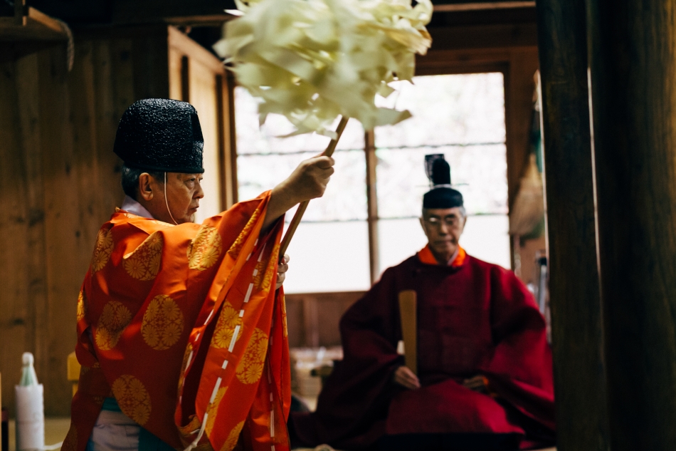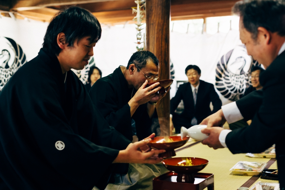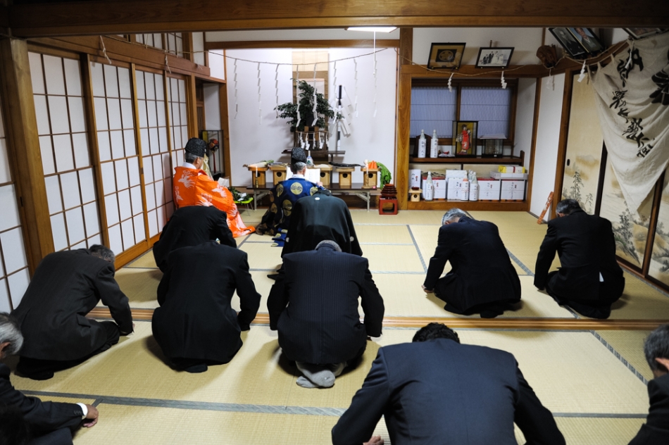 この日はお社は女人禁制になり、氏子の男衆がご祈祷を済ませたのち、車座になり酒をなみなみと注いだ杯を順番に回します。赤飯も、酒も、米の加工品。米の熟饌ともいえ、米を大切に扱ってきた祈りが垣間見える場面でもあります。