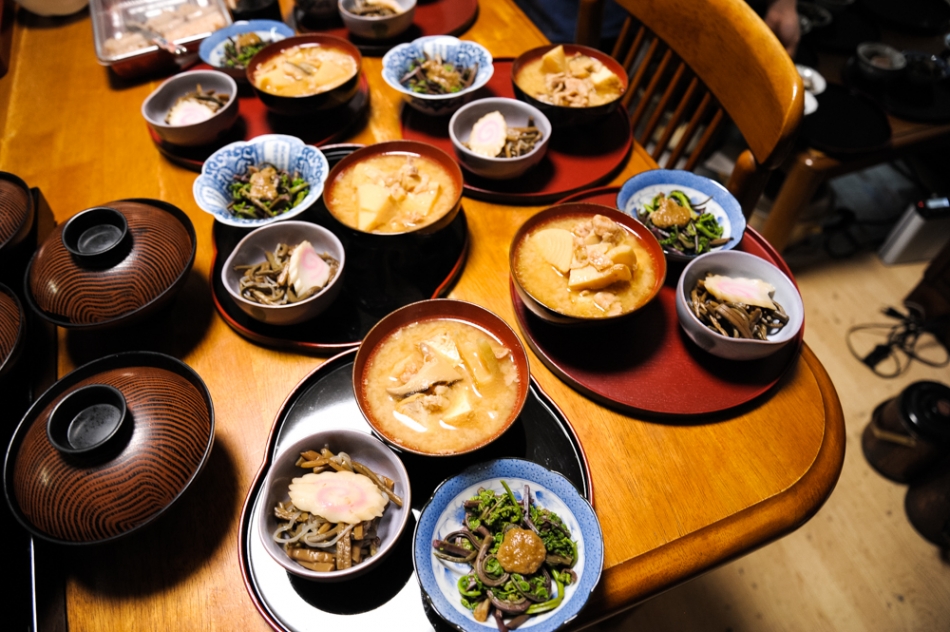 春の始まりに集落の全戸が集合する行事。特別な日だけれど、日常が見える、そんな暖かい日でした。昨年、宮守家には関東からお嫁さんがやってきました。庄内の食べ物や暮らしに慣れるのにはもう少し時間がかかりそうだ、とおっしゃっていましたが、少しずつ、「日常」と「特別な日」をくりかえしながら、色々なことを覚えていくのだろうな、と思います。どういう風にお祭りが変化していくのかわかりませんが、もしかしたら、いまはまだ鶴岡の食文化に出会ったばかりのお嫁さんも、30年後の春の例大祭で山菜料理を作っているのかもしれない、と思うと少し楽しみです。