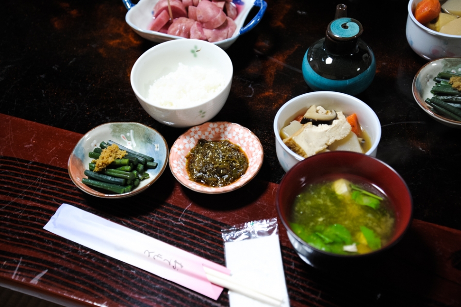 25年前に民田地区からお嫁に来た恵里さんが、愛さんと共に台所で作ったものです。「元々はあまり山菜料理を食べる家ではなかった、だからこっちに嫁いで来てからほとんど覚えたんです」と恵里さんはいいます。